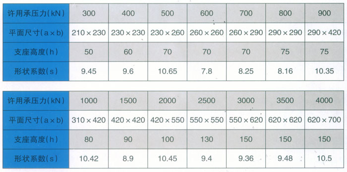本系列支座不存在水平位移,主司豎向減震之功能;因?yàn)橛新菟ㄏ尬,不考慮支座的水平剪切,故下表2的參數(shù)較為簡(jiǎn)單。這種支座是比較常用的類(lèi)型,在中南林業(yè)科技大學(xué)、深圳外國(guó)語(yǔ)學(xué)校等工程的設(shè)計(jì)過(guò)程中,我們根據(jù)工況需求配合有關(guān)方面進(jìn)行了創(chuàng)造性的深化設(shè)計(jì)。