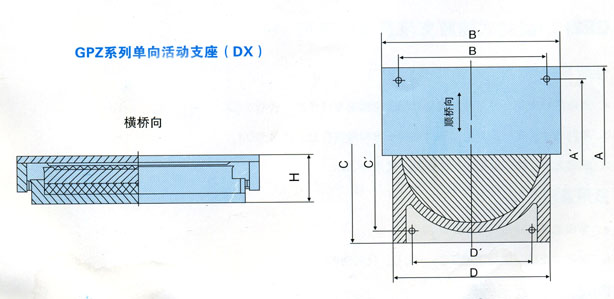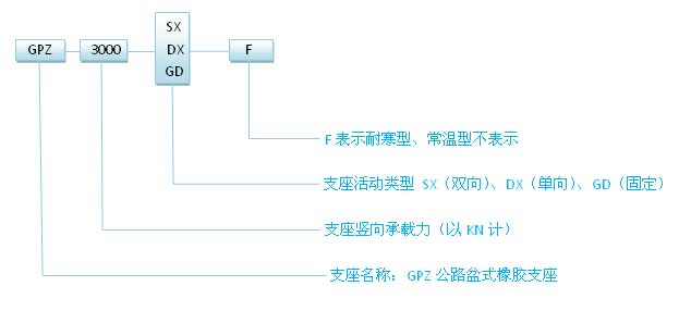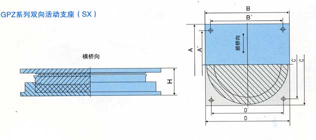 性能及分類 a 、雙向活動(dòng)支座:具有豎向轉(zhuǎn)動(dòng)和縱向與橫向滑移性能,代號(hào)為SX 。 b、單向活動(dòng)支座:具有豎向轉(zhuǎn)動(dòng)和單一方向滑移性能,代號(hào)為DX 。 c、固定支座:僅具有豎向轉(zhuǎn)動(dòng)性能,代號(hào)為GD。